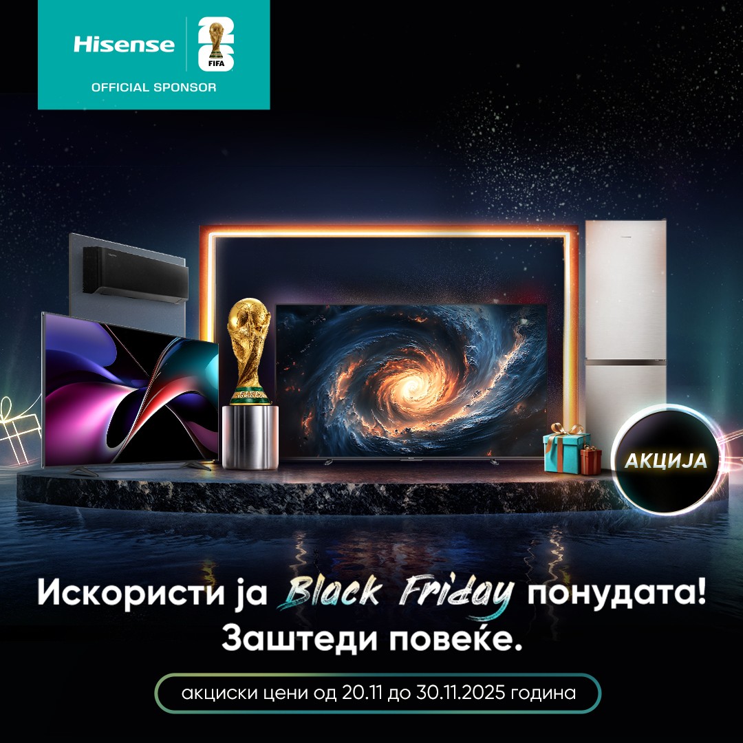 Hisense Македонија ја активираше својата Black Friday кампања и овозможи попусти на телевизори, клима уреди и други апарати за домаќинство.