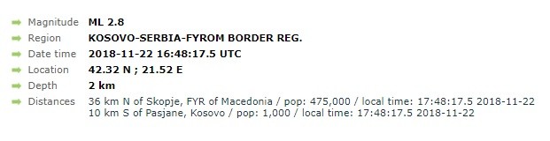 Земјотрес на граница меѓу Македонија, Србија и Косово