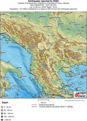 Земјотрес од 2,5 степени вечерва во 20.01 часот е регистриран кај Гостивар.