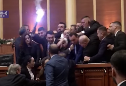 (ВИДЕО) Пратениците во албанското Собрание се тепаа и фрлаа чадни бомби