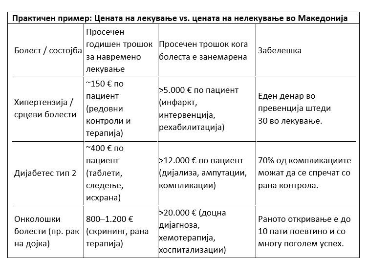 Хипертензија што не се следи → завршува со инфаркт, кој чини десетици илјади евра за лекување.