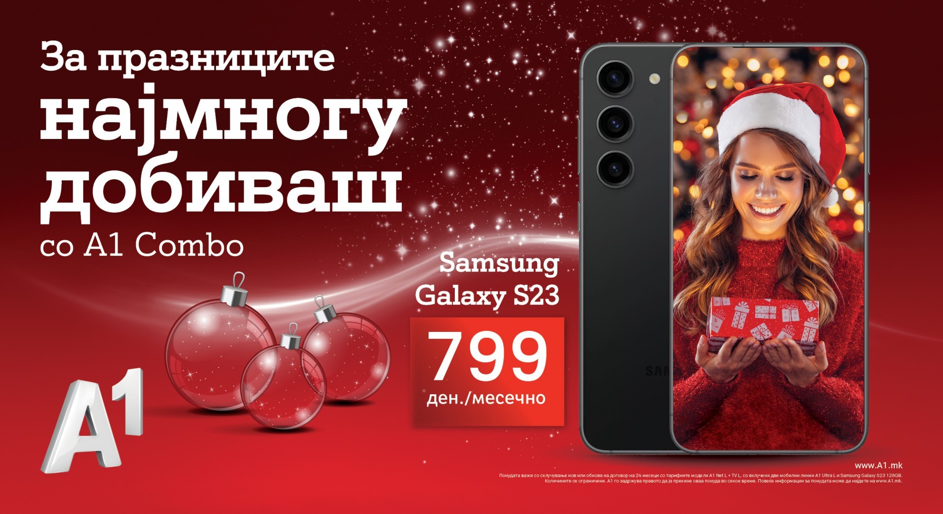 А1 Македонија започнува Новогодишна промоција со која корисниците добиваат можност да ја дочекаат новата година со неограничена комуникација, уште повеќе содржини, многу ТВ уреди и мобилни уреди по најповолни цени. Дополнително, во духот на новогодишното дарување, за сите корисници на апликацијата Мојот А1, компанијата доделува подароци од широкото портфолио продукти вклучувајќи го и најновиот iPhone 15.