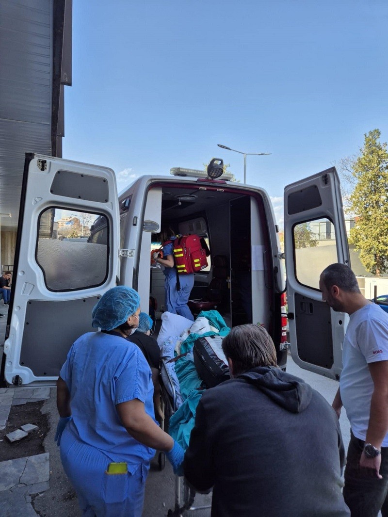 Трите амбулaнтни возила за итен медицински транспорт на Клиничката болница „Аџибадем Систина“, придружени со комплетен медицински тим на болницата, ги примија повредените пациенти од Клиничкиот центар „Мајка Тереза“ кои ќе бидат транспортирани во здравствена институција надвор од границите на државата.