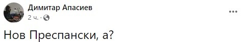 Лидерот на Левица, Димитар Апасиев со краток коментар на социјалните мрежи прашува дали се работи за нов Преспански, мислејќи на францускиот предлог за кревање на ветото кој стигнал во Софија, и чија содржина ја објавија повеќе медиуми.