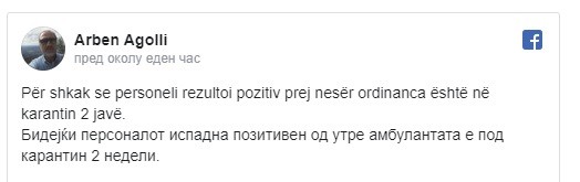 Лекарот од Дебар, Арбен Аголи кој пред неколку дена на својот профил на Фејсбук објави фотографија со своите колешки кои во рацете држат порака на македонски и на албански јазик: „Ние сме на работа, вие седете дома”, сега објави нова информација.