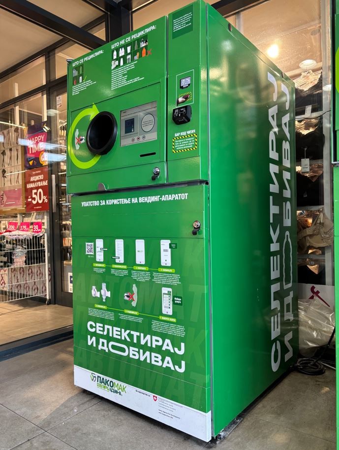 Поставувањето на повратните вендинг машини е проект кој го започнаа Пакомак и Швајцарската амбасада како стратешки партнер, преку кој во изминатите четири години беа поставени 70 машини во 15 градови (општини) од земјата. Во моделот за поставувањето на машините приоритет имаат општини кои земаат учество во стимулирањето на нивните граѓани да ги користат машините со субвенционирање на „зелените поени“ – симболичен издаток за општината кој дава големи резултати во собрани шишиња и лименки што во спротивно би завршиле во речните корита и локалните депонии.