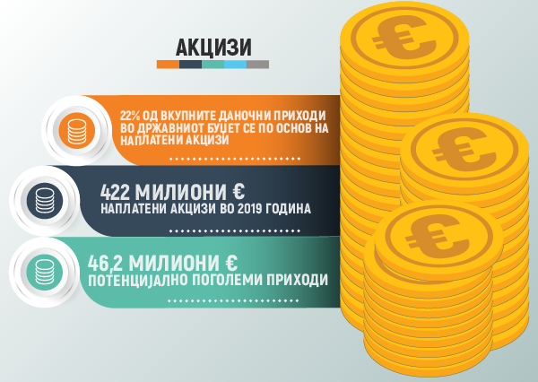 Зголемувањето на акцизите е дел од пакетот решенија кои во оваа кризна ситуација ги предложи Стопанската комора на Македонија. Оттаму велат дека на сите ни е јасно дека никој нема да може да ги одбегне негативните економски ефекти кои со себе ги донесе коронавирусот, прашањето е само како да успееме што помалку засегнати да излеземе од ситуацијата.