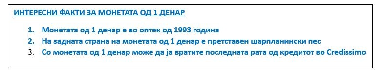 ЧУВАЈТЕ ГИ СИТНИТЕ ПАРИ – 1 ДЕНАР РАТА ВО CREDISSIMO