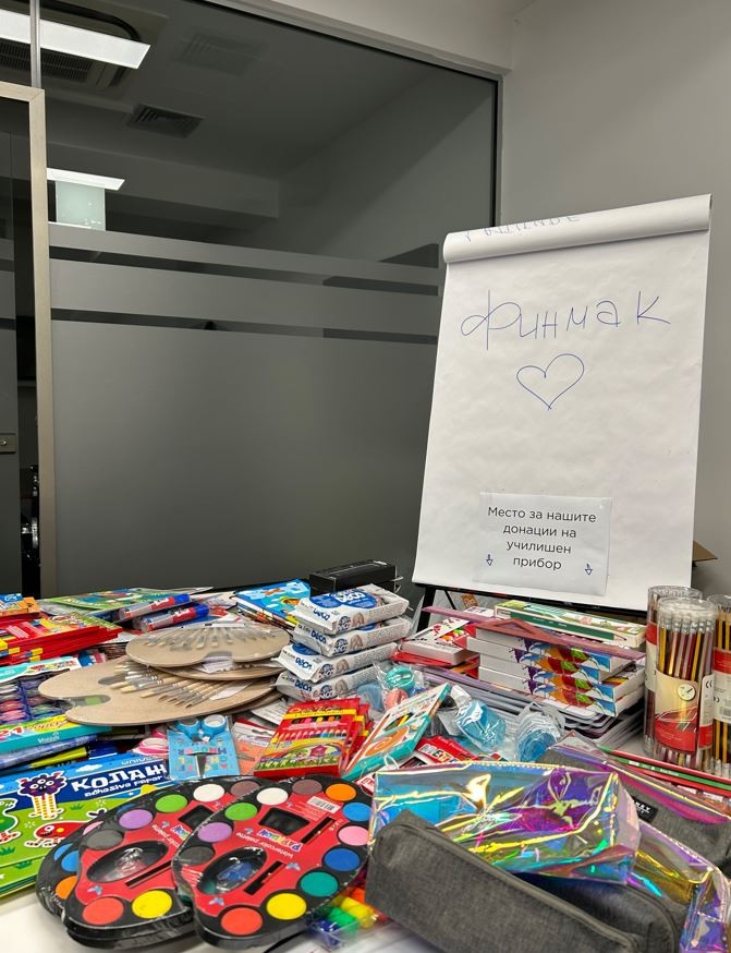 Со цел да им помогнат на семејствата од социјално ранливите категории во полесно надминување на предизвиците при набавка на училишни материјали и прибор, вработените во Финмак покренаа иницијатива за донација на нови и употребени, но употребливи училишни материјали, кои на дечињата ќе им овозможат подеднакво да уживаат во своето ново образовно поглавје.