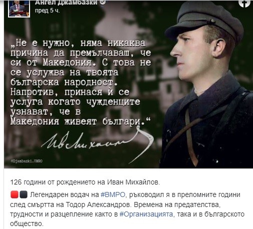 Тој денеска со провокативен статус на Фејсбук одбележа 126 години од раѓањето на Ванчо Михајлов. Џамбаски рече дека „со народот зад Деве Баир, ние (Бугарите) сме еден народ поделен со вештачка граница“. Тој и претходно македонските ги нарекуваше бугарски градови. Дури објавуваше и карти во кои Македонија и Бугарија се една држава.
