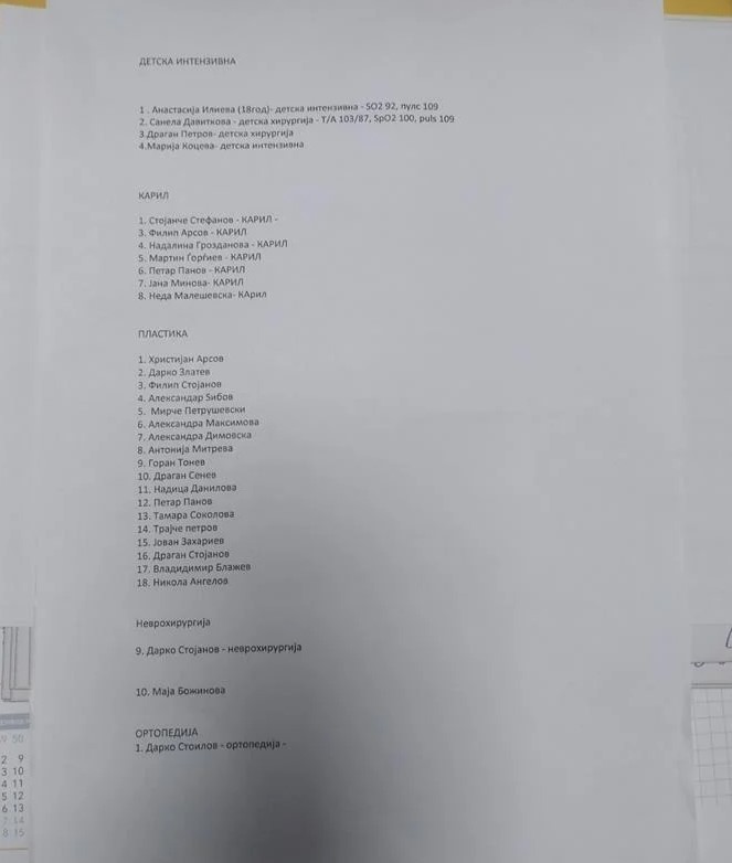 Преку извори од Министерството за здравсто, Канал 5 дојде до списоците со хоспитализирани во ГОБ „8 Септември“ и Клиничкиот центар во Скопје.