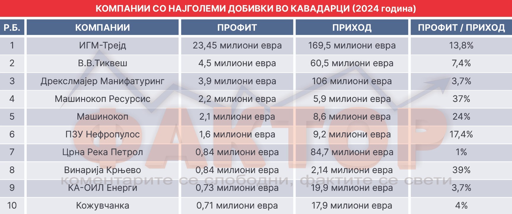 НАЈПРОФИТАБИЛНИ КОМПАНИИ ВО КАВАДАРЦИ во 2024 година
