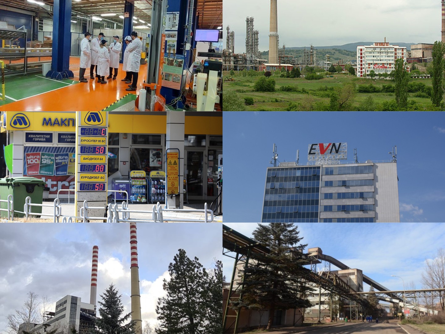 Во најголемите 10 бизниси во Македонија се домашните производители на  струја, на лекови и на никел. Освен нив тука се четирите најголеми трговци и тоа еден за трговија со струја, два за трговија со горива (трговија на големо и продажба на мало) и еден што оперира со најголемиот ланец супермаркети. Во групата најголеми, освен неприкосновениот „Џонсон Мети“ има уште еден провајдер на стоки за глобалната автомобилска индустрија. Во најголемите меѓу најголемите, очекувано, е  и домашниот универзален снабдувач со електрична енергија регулирана услужна дејност (кој по својот опис и дејност е предодреден да биде во најголемите десет фирми во земјава).