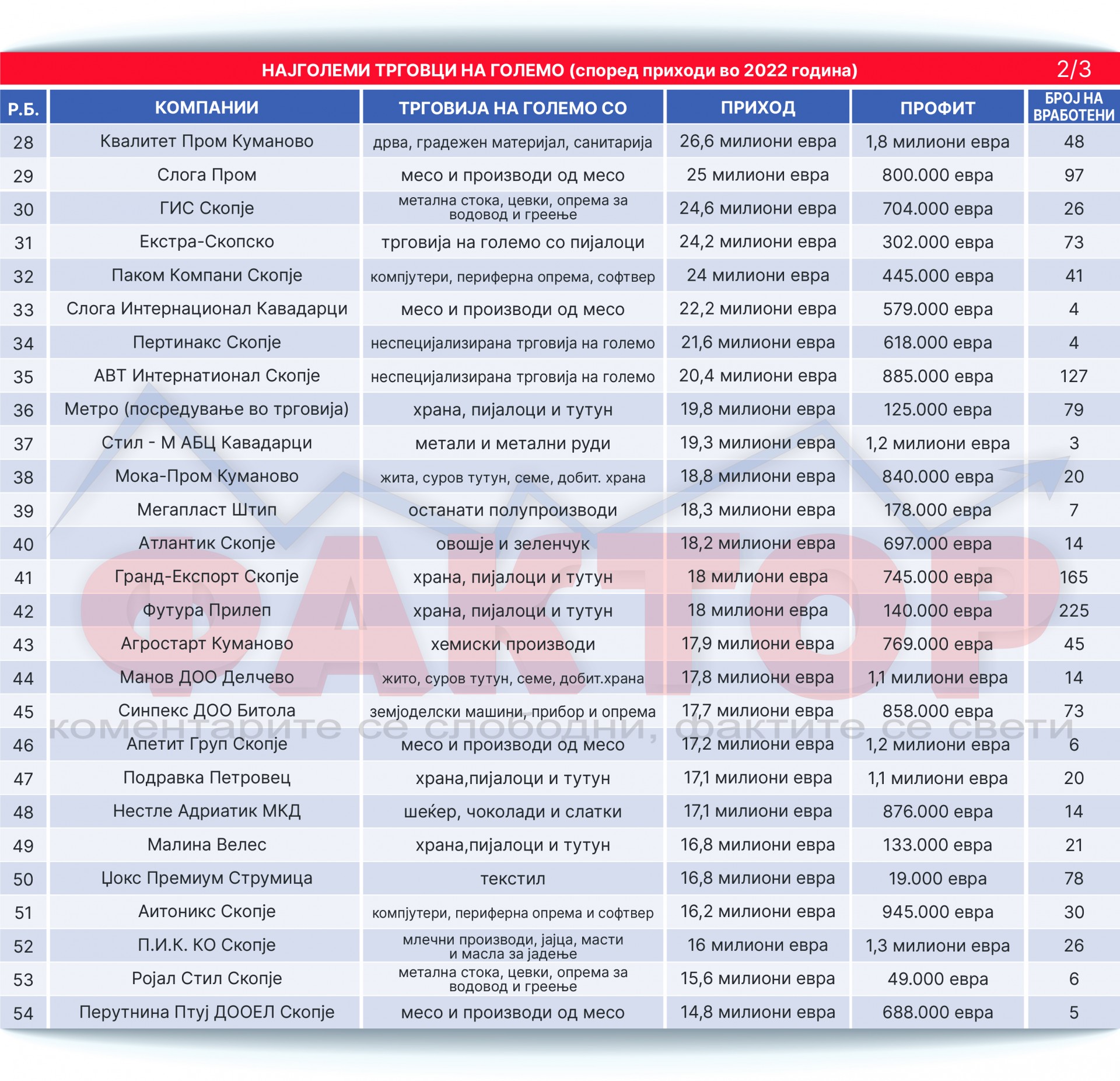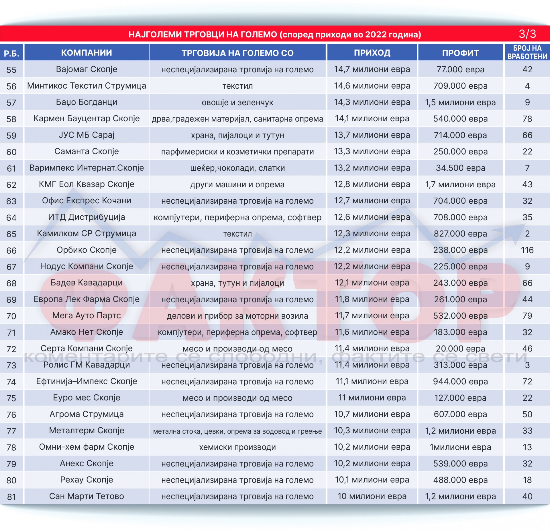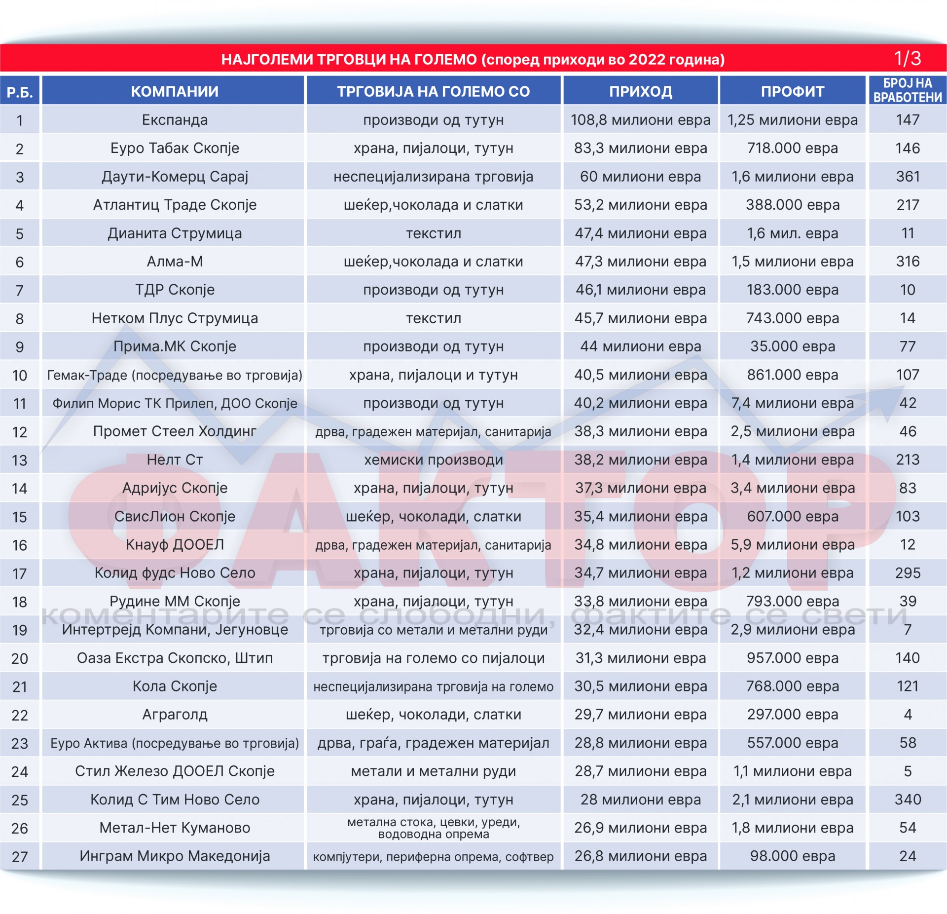 „Фактор анализа“: Од 10 до 110! Кои се најголемите трговци на големо во Македонија?
