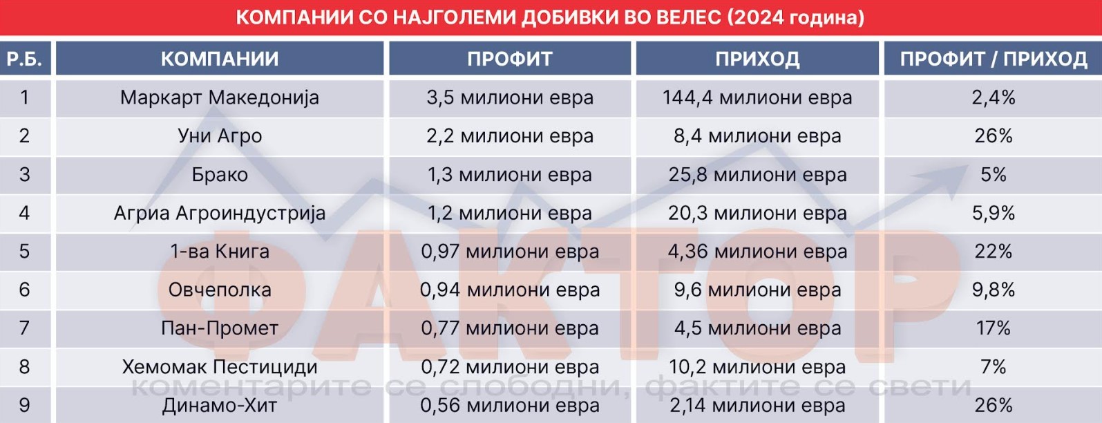Еве ги најголемите и најпрофитабилни компании во Велес: