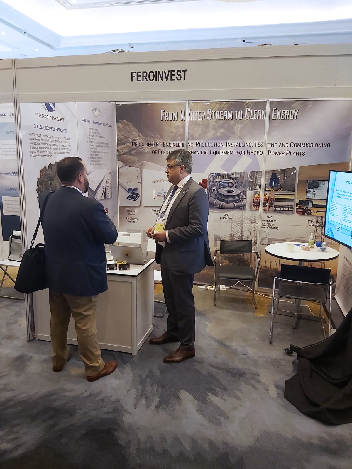 Тодор Анѓушев, директор на фирмите ЕМС и „Мали хидро електрани“, во рамките на ФЕРО ИНВЕСТ и Филип Андрески, директор за развој во групацијата, ги запознаа посетителите на саемот со можностите на ФЕРО ИНВЕСТ како партнер во изведувањето на енергетски проекти, прикажувајќи го портфолиото од реализирани над 120 електрани, од кои над 60 се поврзани директно со мали хидроелектрани.