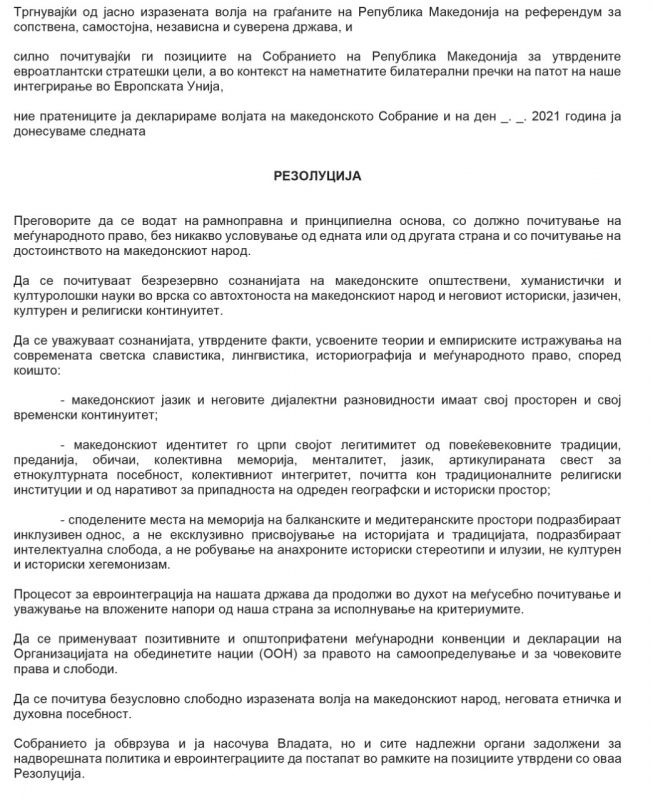 (ФОТО) ВМРО-ДПМНЕ ја објави предлог Резолуцијата и го повика СДСМ заедно да ја изгласаат