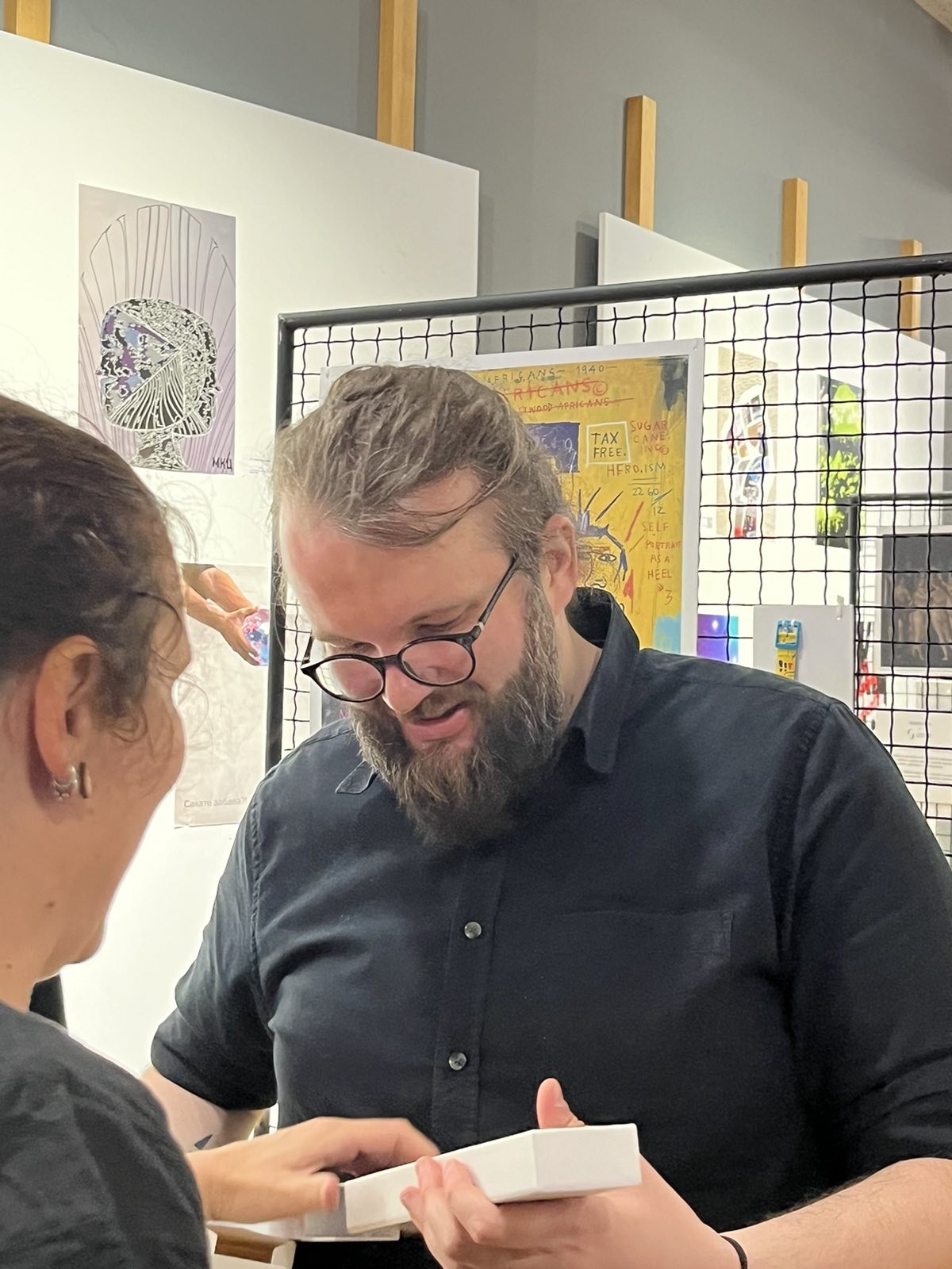 На најсоодветната локација за ваков тип на настан Младинскиот Културен Центар, посетителите имаа можност во автентичен амбиент и музика да се запознаат со делата на Мишел Баскијат, како и со часовниците инспирирани од уметникот, кои се есклузивно достапни во „Божиновски часовници и накит“.