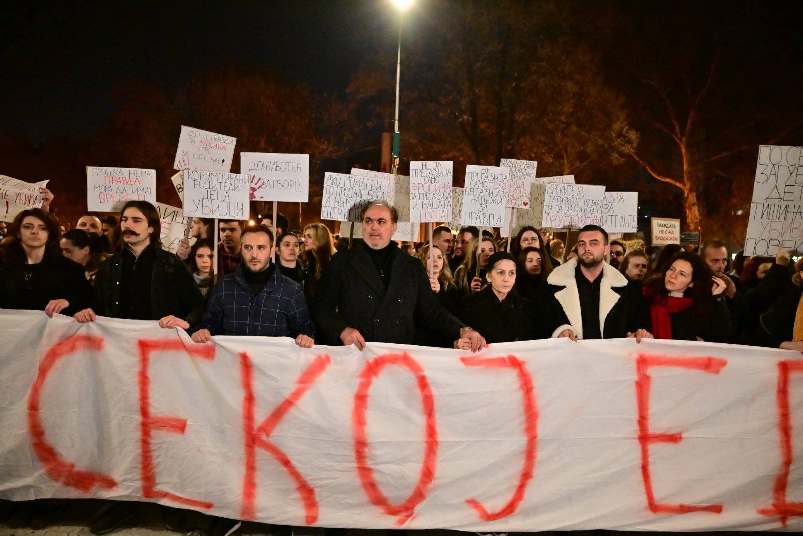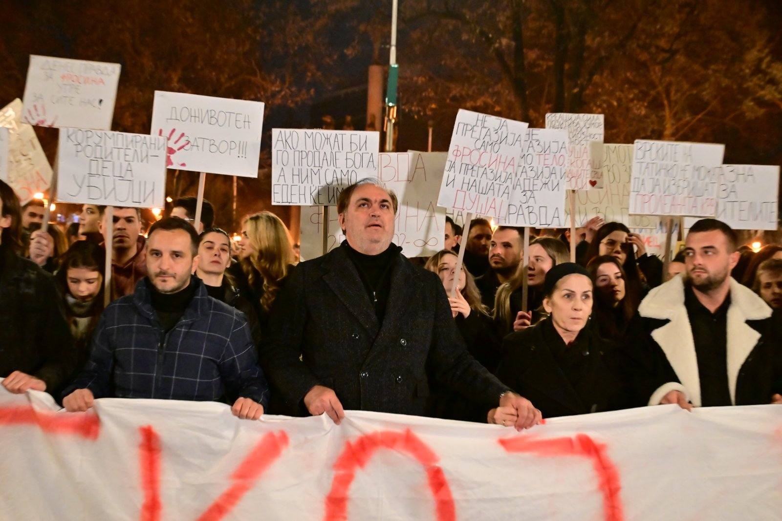 Демонстрантите од Партизанска се упатија кон Собранието. Таму со молк оддадоа почит на загинатата девојка. Таткото на Фросина, Тодор беше присутен на протестот во Скопје. Тој рече дека прво следува фаза на шок, па на бес и вели дека јавноста може да донесе правда. Демонстрантите извикуваа „Убијци“. Таткото на девојчето рече дека треба да одговараат и родителите кои создаваат монструми. Демонстрантите порачаа дека секој еден може да биде следен.