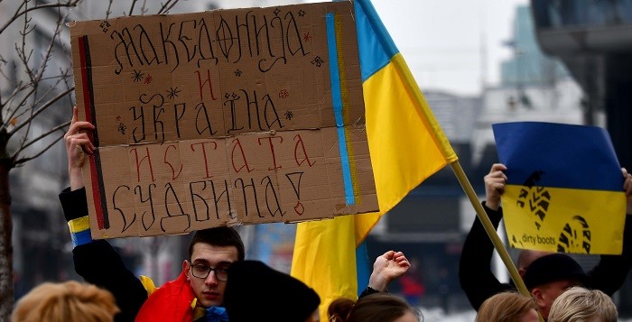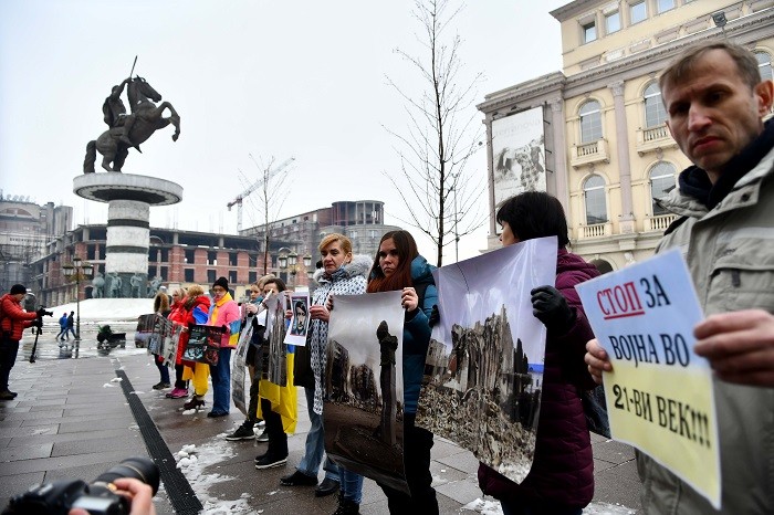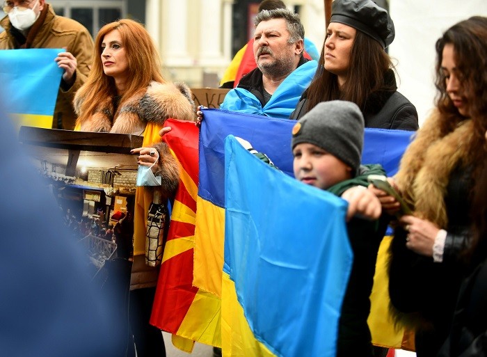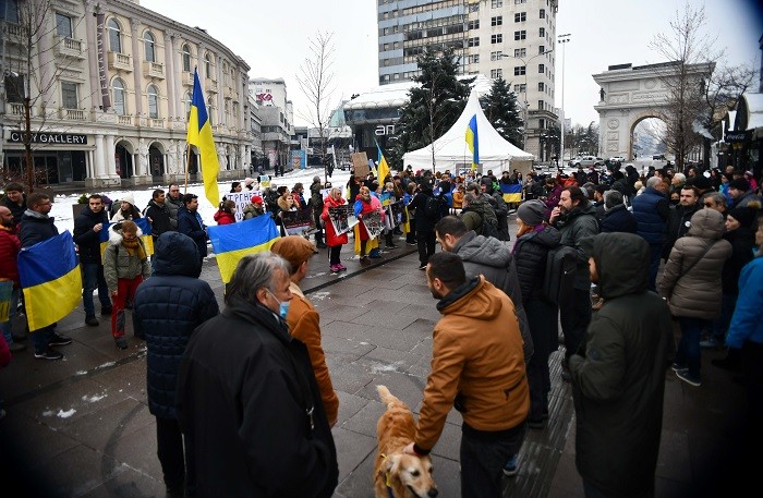 (ГАЛЕРИЈА) НОВ ПРОТЕСТ ВО СКОПЈЕ: Украинците бараат да се затвори небото над Украина