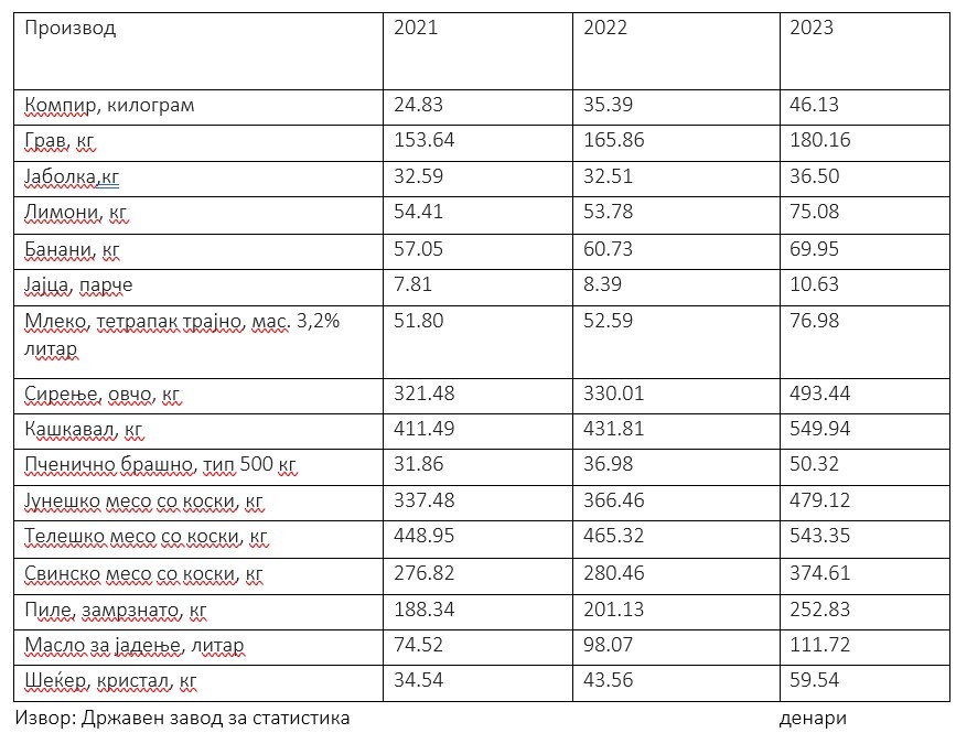 Бројките кои ги објавува Државниот завод за статистика говорат дека во период од една година најмногу поскапел лебот, од други 40 отсто. Потоа следува месото кое поскапело 30 проценти, а нешто повеќе или 36 отсто млекото, сирењето и јајцата. Маслата покапеле 20 отсто, а раст забележаа и слатките продуките, и тоа за високи 18 проценти.