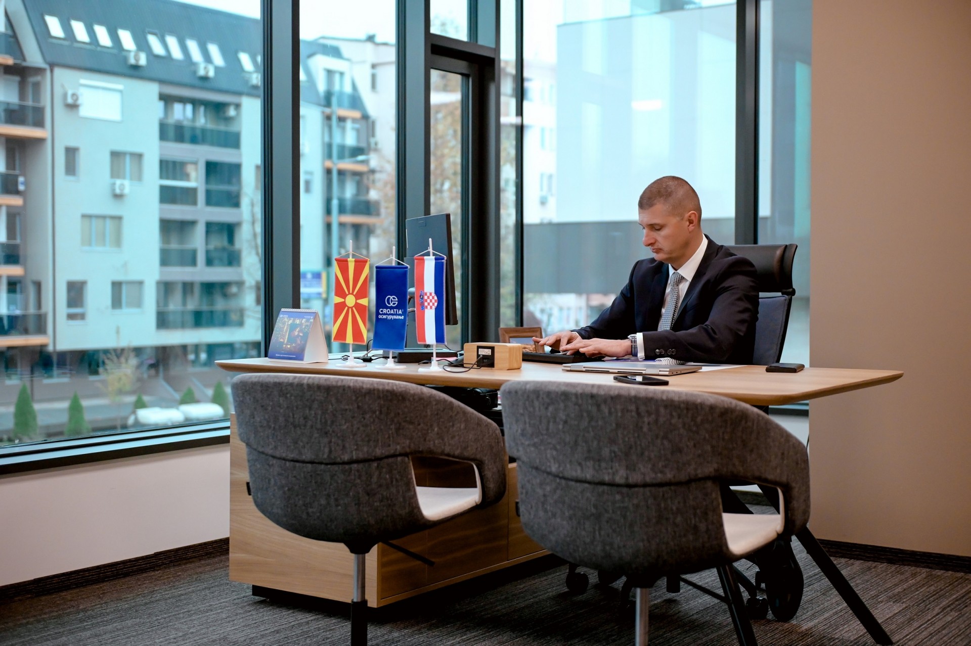 Maнев: Новиот деловен објект е вистинска слика за брендот Кроација, но тоа што е побитно и за мене најважно е дека вработените, целиот тим на Кроација има услови за работа по светски стандарди. Горд сум на одлуката за нови канцеларии, а тоа веќе се чувствува по ентузијазмот и енергијата која вработените ја имаат во новиот објект.