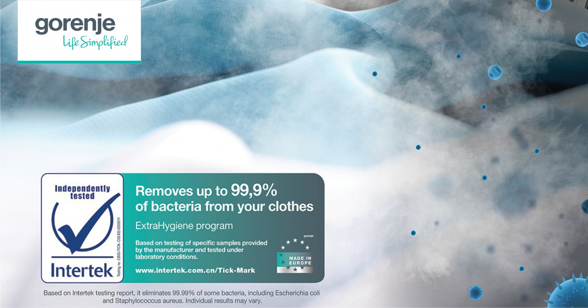 Како одговор на растечкиот тренд кон зголемена чистота во модерните домаќинства, Gorenje ја воведува ExtraHygiene функцијата за машини за перење и машини за сушење алишта. Оваа иновативна карактеристика ја рефлектира нивната посветеност на благосостојбата на потрошувачите, а истовремено внимава и на животната средина. Програмата ја користи природната моќ на пареата и високата температура за да ги отстрани најтврдокорните дамки и непријатните мириси. Ова ја елиминира потребата од употреба на груб детергент и ја прави рутината за перење многу попријателска за планетата.