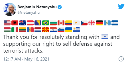 Нетанјаху им се заблагодари на државите кои ја поддржуваат неговата земја во борбата против теророт. Меѓу нив од Балканот се најдоа Македонија, Албанија, Босна и Херцеговина и Словенија. Во земјава и ВМРО-ДПМНЕ даде поддршка на Израел.