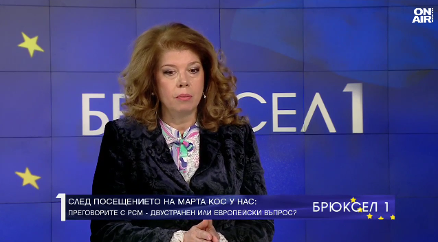 „Неодамна почувствував искривување на темата ‘проширување на ЕУ’, а особено со Република Северна Македонија. Постои тенденција ова проширување и овој процес да се стават во билатерална рамка. И уште повеќе – некои од нашите европски партнери, вклучително и европскиот комесар Кос, зборуваат како Бугарија да го запрела овој процес затоа што има некаков билатерален проблем, затоа што двете земји не се разбираат, затоа што не можат да се договорат за нешто“, коментираше потпретседателката Илијана Јотова во емисијата „Брисел 1“ на „Bulgaria ON AIR“.Можеби ќе ве интересира