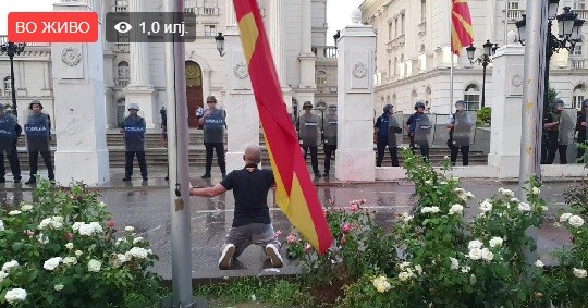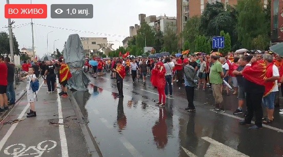 Демонстрантите пеат патриотски песни и извикуваат „Никогаш Северна, само Македонија“, „Бугари“, „Предавници“. Еден од присутните клекна на колена пред полицискиот кордон пред Владата. „Каде ви е достоинството“, извикуваа демонстрантите.