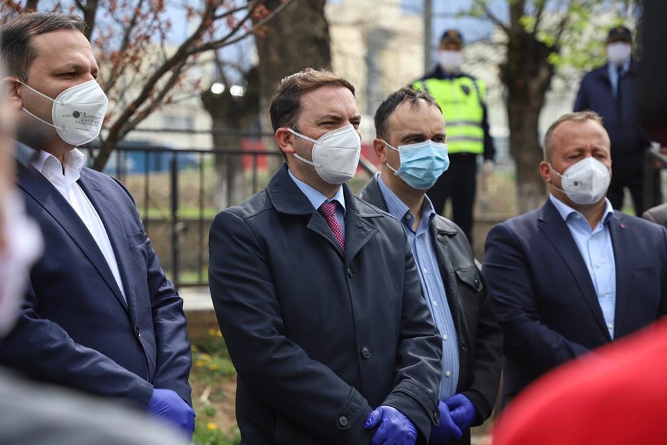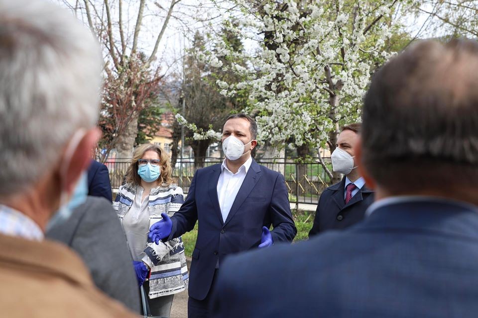 „Наоружан“ со маски владиниот тим пристигна во Дебар. Наместо ракување, премиерот Оливер Спасовски со дебарскиот градоначалник Хекуран Дука го имаше типичниот „корона поздрав“, односно допирање со лактите.