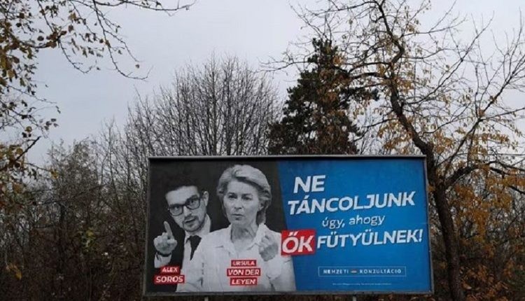 Оваа партија денеска постави билборди во кои ја критикува Фон дер Лајен. Во текот на ноќта, на кампањските плакати за европските парламентарни избори во јуни следната година се гледа Фон дер Лајен заедно со Алекс Сорос, син на либералниот милијардер инвеститор со унгарско потекло Џорџ Сорос, долгогодишна цел на непријателство од партијата Фидес на премиерот Виктор Орбан.