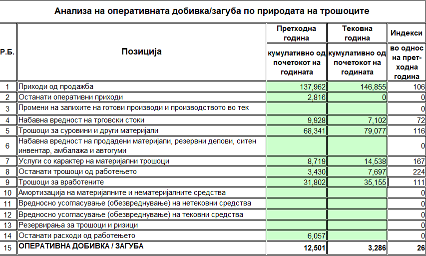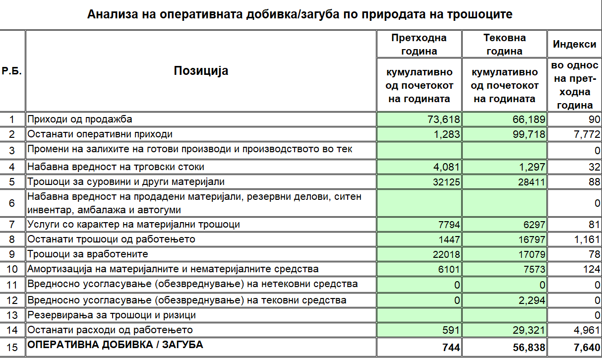 Тоа е многу поприфатлив изглед на еден биланс на успех отколку претходниот, за кој, мора да се спомене дека на Берзата стоеше неколку дена и компанијата не почувствува потреба да го корегира, се додека Фактор не го објави текстот за големата разлика во висината на трошоците за вработените што биле поделени лани и оваа година.