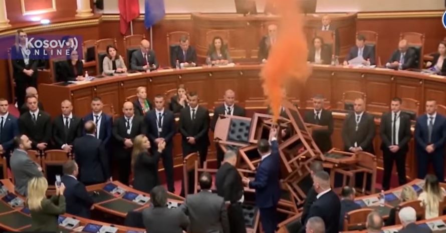 ИНЦИДЕНТ ВО СОБРАНИЕТО НА АЛБАНИЈА: Пратеници активираа димни бомби, ги запалија собраниските клупи (ВИДЕО)
