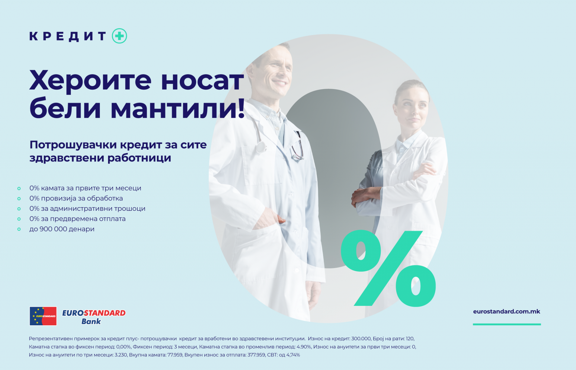 Од тие причини, Еуростандард Банка одлучи во своето кредитно портфолио да воведе нов потрошувачки кредит – „Кредит +“, кој ќе биде наменет за здравствените работници, нудејќи им поволности кои досега не се понудени во овој сектор.