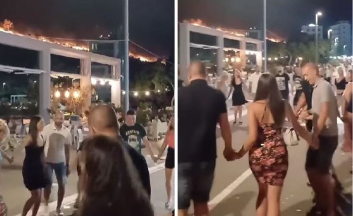 Пожарот зафатил дел од шумата и ситна вегетација, а се гледал и од градот Бар. Додека пожарникарите се бореа со пожарот, снимката која почна да се споделува на социјалните мрежи остави многумина во шок, затоа што луѓето играат.