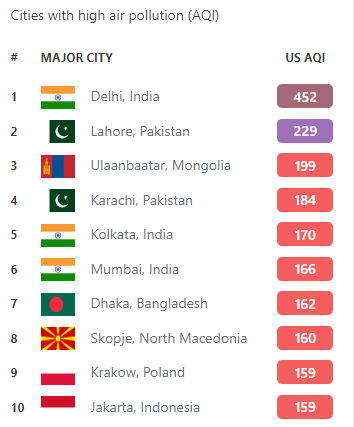 Скопје повторно е високо рангиран на листата на најзагадени градови во светот. Синоќа по 21 часот, на листата на air visual беше на 8-то место. По 21 часот синоќа, воздухот во Струмица беше многу високо загаден.