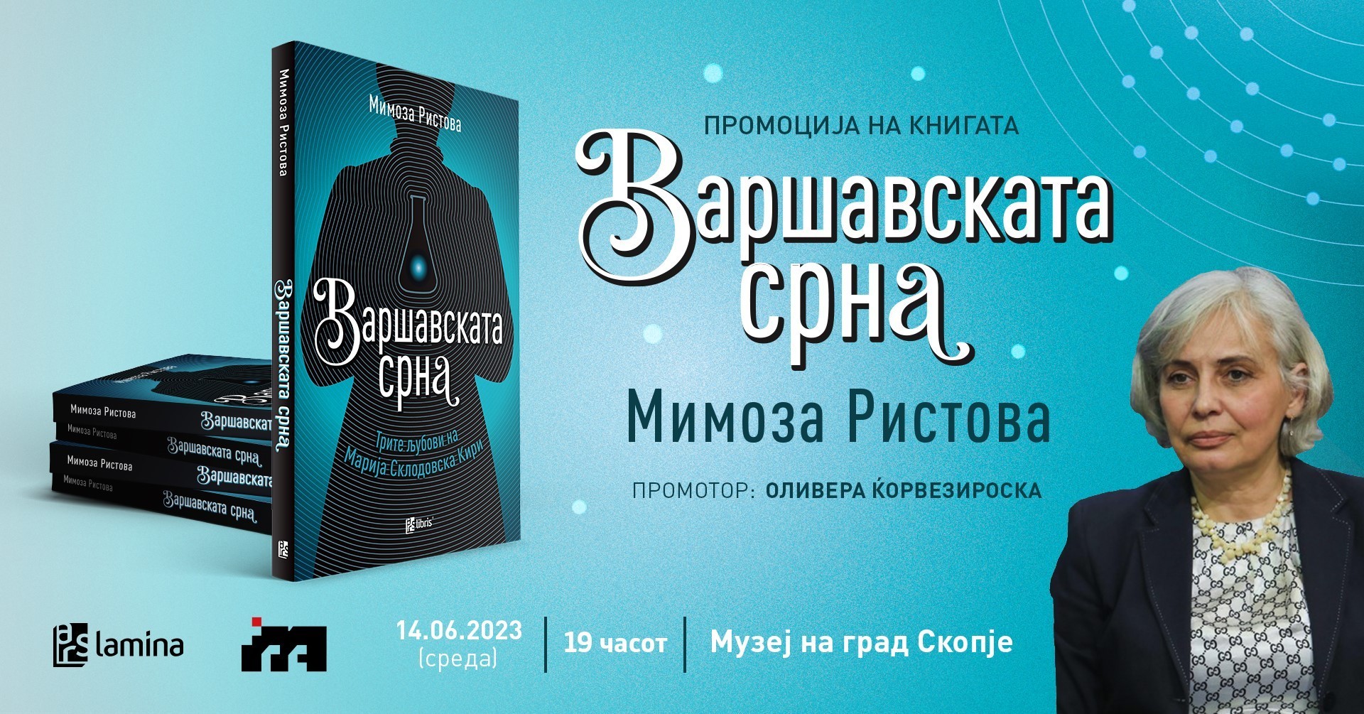 Новиот роман „Варшавската срна: трите љубови на Марија Склодовска Кири“ од Мимоза Ристова ќе биде промовиран на 14.06 (среда), во 19 часот, во Музејот на Град Скопје. Промотор на книгата, која е во издание на „Арс Либрис“, дел од „Арс Ламина – публикации“, ќе биде уредничката Оливера Ќорвезироска.