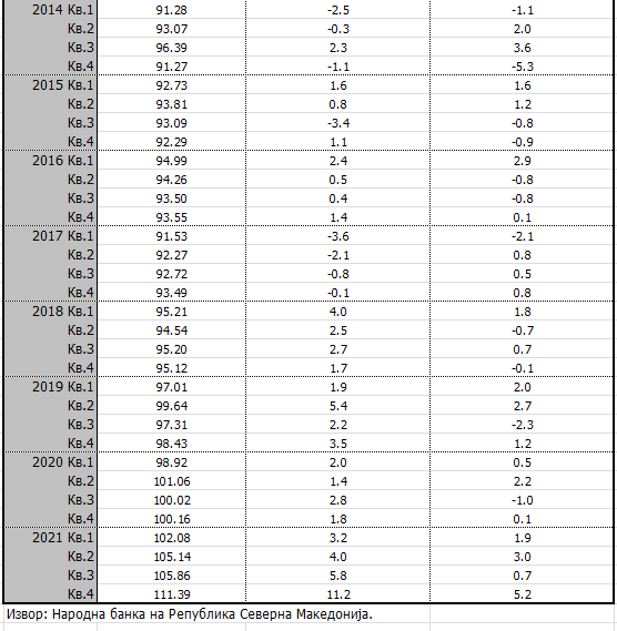 Ако се анализира по квартали, поскапувањето е далеку најзначано во последниот иако не беше занемарливо и претхдните три. Во третото тромесечје годишната промена на ценат аизнесува 5,8 процентни поени, во вториот квартал поскапувањето било 4 отсто, а во првиот 3,2 проценти.