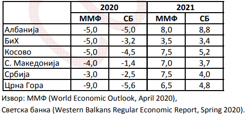 Пад на макеоднскиот БДП од пет проценти годинава, намалување на трошоците за живот односно дефлација од еден процент и раст на невработеноста до 21 отсто годинава предвидува Виенскиот институт за меѓународни економски студии. Во најновите проекции, Институтот има пооптимистички прогнози за Македонија во однос на некои други земји од регионот, но сепак ова е најпесимистичката проекција за земјава од сите досега. Меѓународниот монтарен фонд, Светска банка, Европската комисија, па и Владата и Народната банка имаат прогнози за нешто послаб пад на БДП годинава.