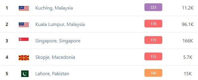 Пред него се само Сингапур, Куала Лумпур и Кучинг во Малезија.