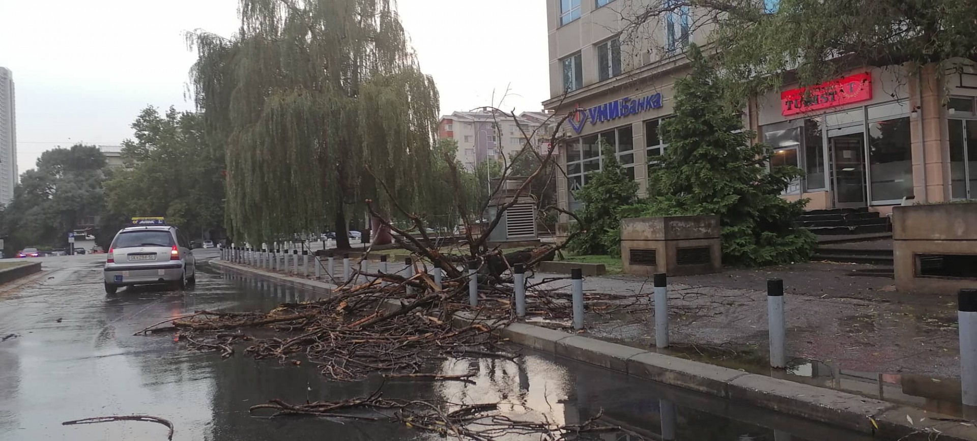 (ФОТО) Силен дожд во Скопје, ветерот искрши дрвја