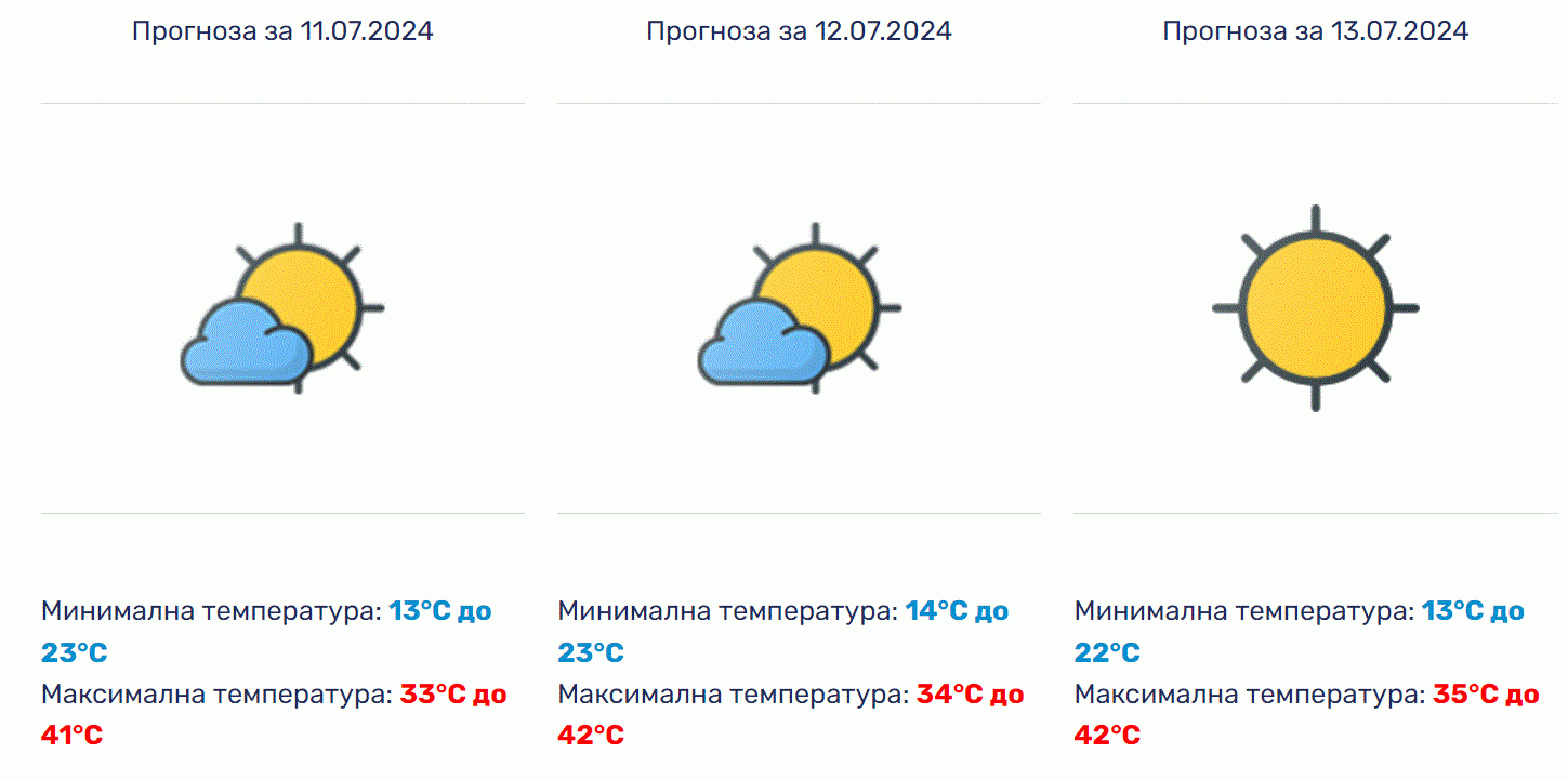 Управата за хидрометеоролошки работи вообичаено вади прогноза за следните три дена, и според најавите овие денови ќе биде екстремно топло. Температурите ќе надминуваат 40 степени.