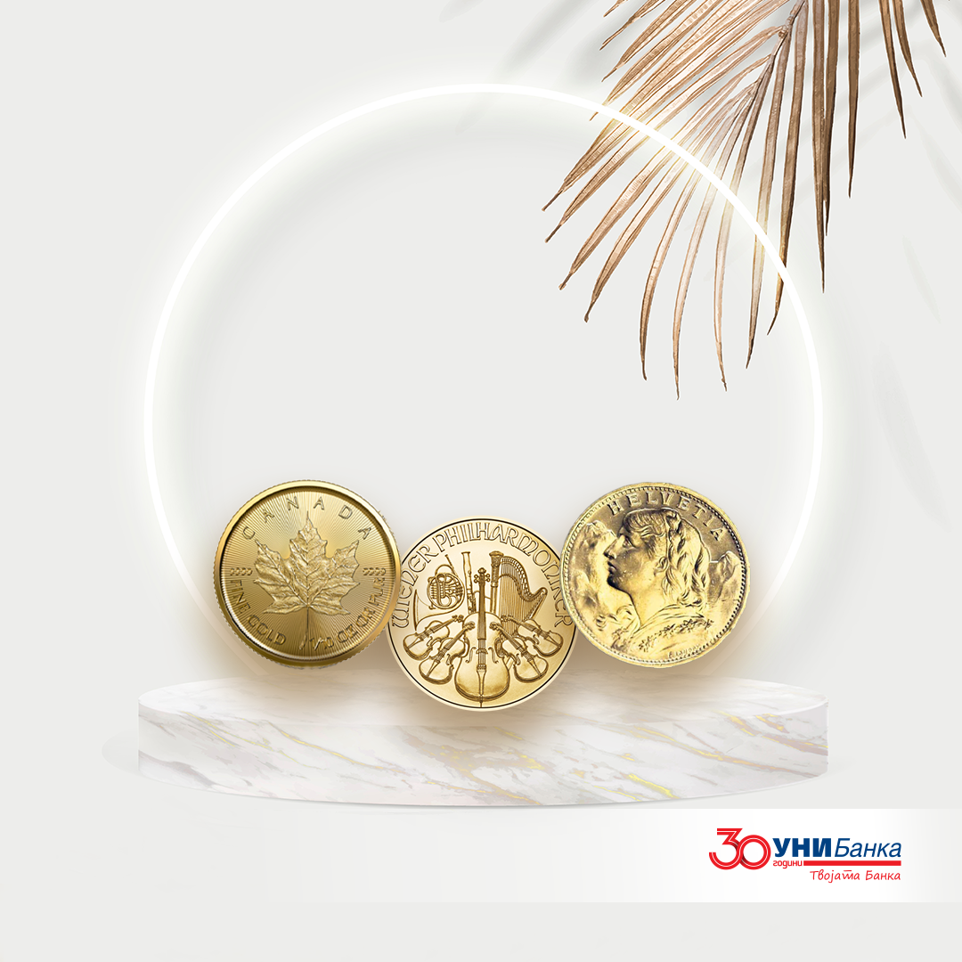 Благодарение на УНИБанка и граѓаните и деловните субјекти во земјава можат да купат златни плочки и монети со највисока чистота и да ја осигураат својата финансиска иднина.