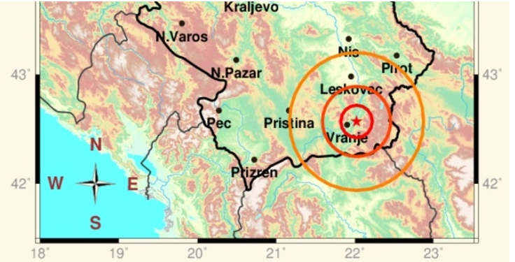Во близина на српскиот град Врање утрово имаше земјотрес, а истиот го почувствувале и жителите на Куманово.