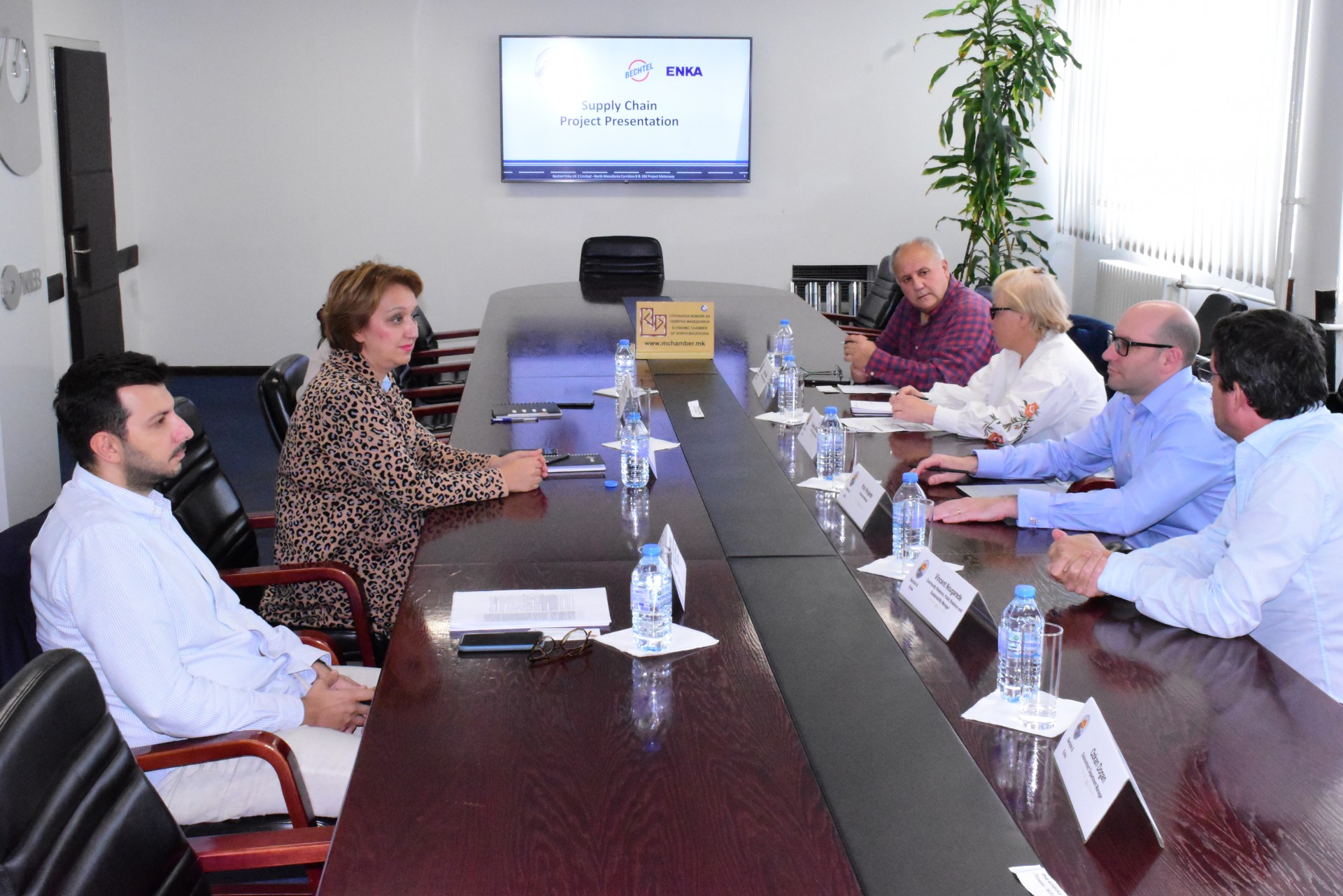 ВоСтопанската комора на Северна Македонија се одржа работна средба меѓу претставници на Комората и на Конзорциумот „Бехтел ЕНКА“, изведувач на проектот за автопатиштата од Коридорот 8 и од Коридорот 10д, членка на Комората. Оваа презентација имаше цел подобро да ги објасни водечките принципи на тендерскиот процес на „Бехтел ЕНКА“ за зајакнување на учеството на локалните компании во проектот за автопатиштата, што до денес, според информациите на „Бехтел ЕНКА“, е дека околу 90 % од подизведувачите и 65 % од добавувачите се локални компании. Дополнително, по краткиот осврт на опсегот на проектот и на историјата на проектите на „Бехтел ЕНКА“ на Балканот, фокусот на состанокот беше врз средствата за зајакнување на учеството на македонските компании од широк опсег на сектори до завршувањето на четирите секции на коридорите 8 и 10д со вкупна должина од 111 километри.