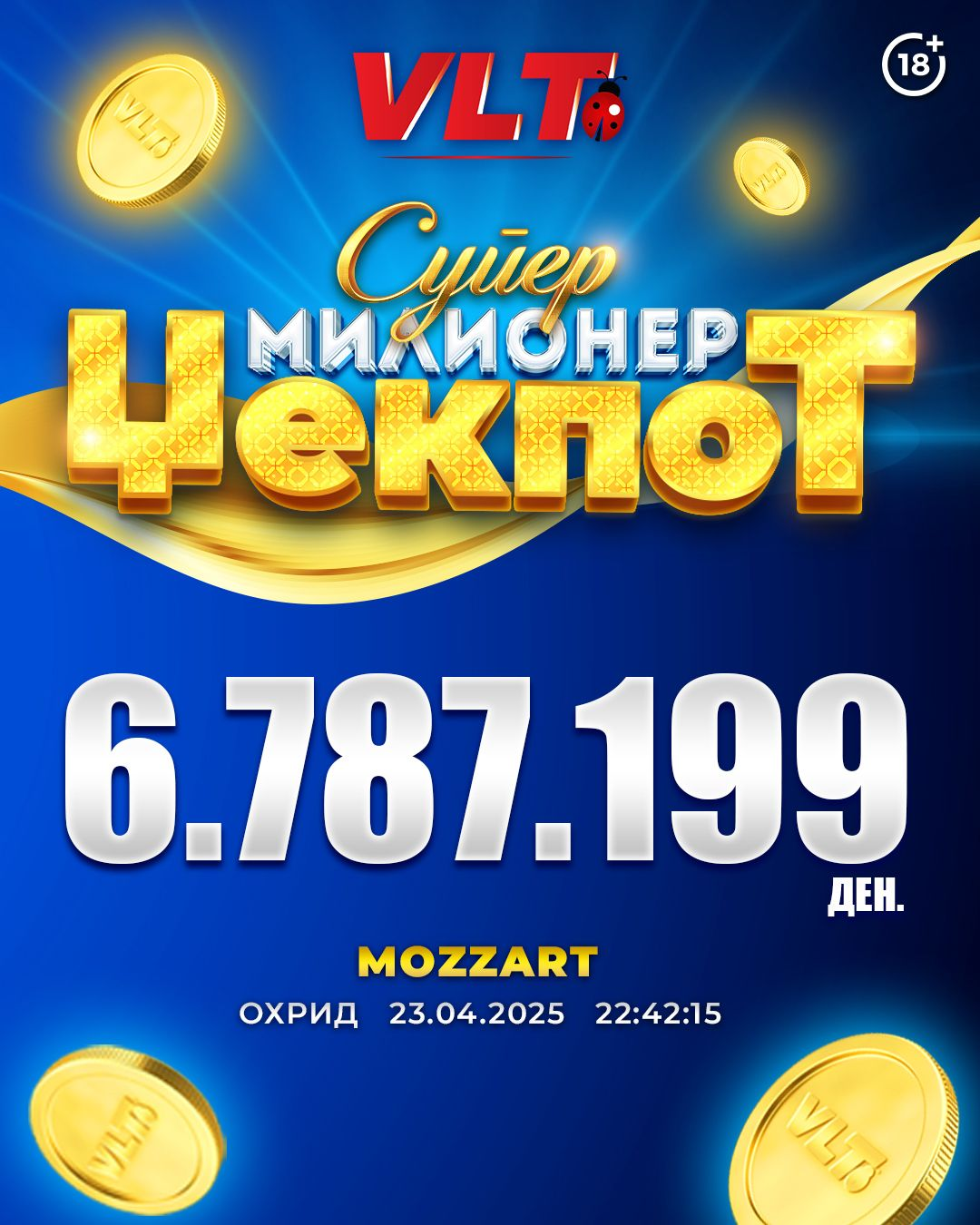 Со вас споделуваме и дека изминатата недела од 14.04.2025 до 20.04.2025, беше добитна за играчите на видеолотариските терминали кои заедно поделија фантастични 17.087.118 денари. Во овие седум дена, еден играч освои СУПЕР МИЛИОНЕР џекпот. Покрај тоа, дури 5 Милионер џекпот добитници заедно поделија 7.328.212денари. Супер добитната седмица ја заокружуваме со Мини џекпот добивките, чиј вкупен износ достигна 2.163.645денари.