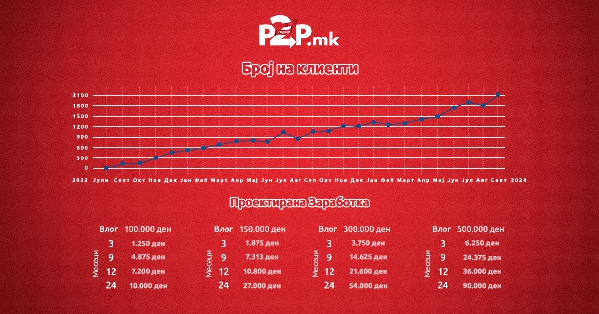 Во последните неколку години, пазарот на P2P платформи доживеа огромен раст во светот, а ние со гордост можеме да кажеме дека бевме првите во Македонија кои ја донесоа оваа иновација. Денес, сè повеќе луѓе сфаќаат дека не мора да бидат пасивни набљудувачи на пазарот, туку можат активно да учествуваат и да ги зголемат своите парични средства.