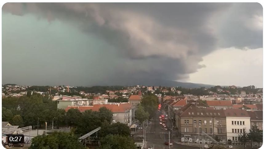 „РХМЗ издаде предупредување за денеска и утре за подрачјето од Алпите, преку Западен Балкан и Србија, до регионот на Карпатите. Таа област ќе биде многу активна со грмотевици попладне денеска и утре и во областа се забележува развој на суперклеточни бури како оние пред два дена. За жал, точната локација е многу тешко да се одреди однапред, така што ќе издаваме поединечни предупредувања за итни случаи час или два однапред“.