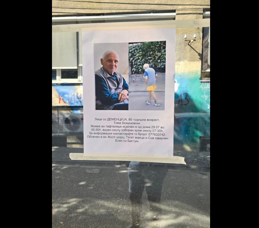 На осумдесет и пет годишниот Томе Божиновски од Тафталиџе веќе трет ден му се губи секаква трага. Исчезнал на 29 јули и оттогаш нема никакви информации за него.